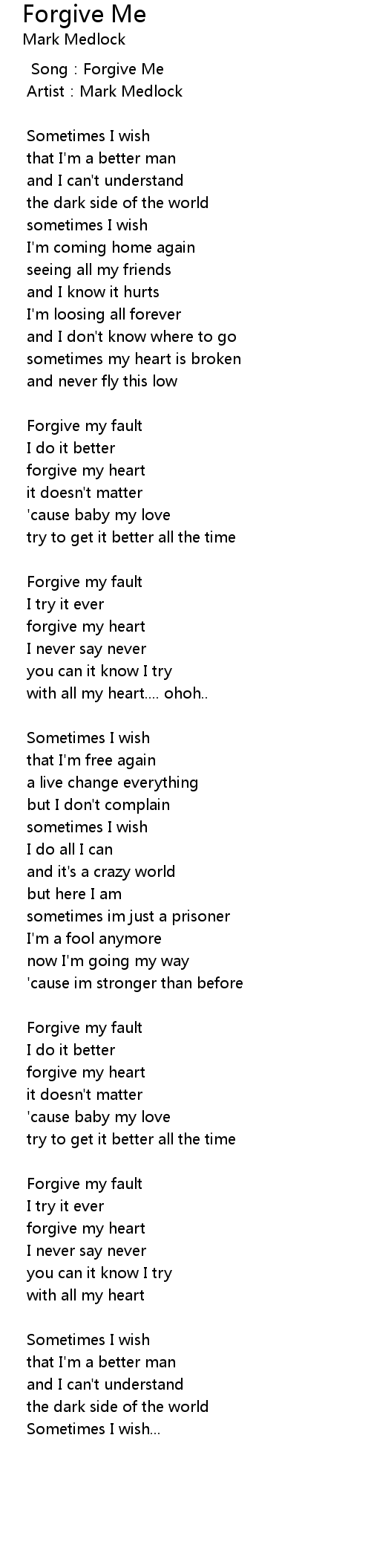 | Song | Forgive Me |