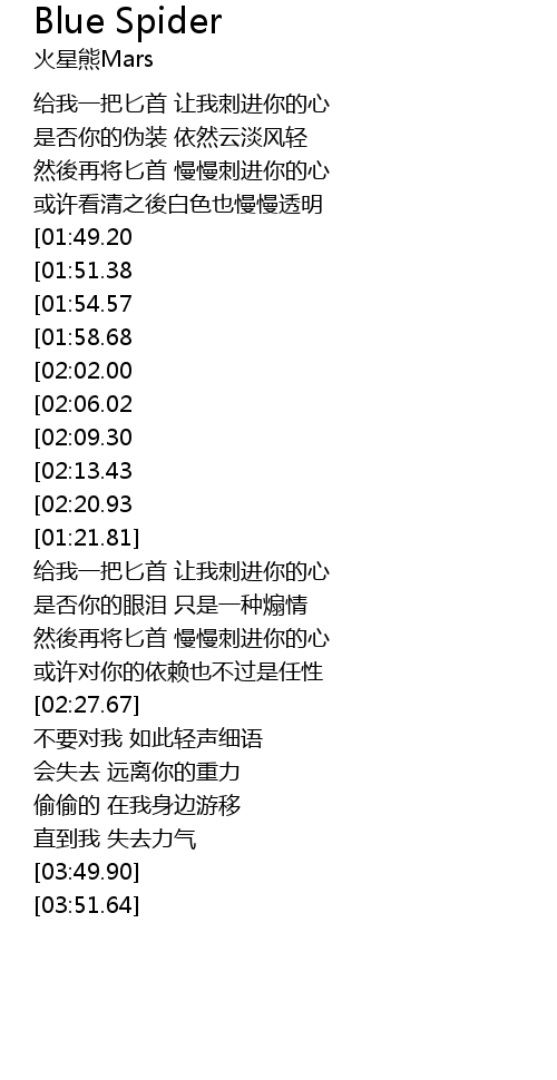 [03:28.40][02:06.02][01:00.21] You ‘re a blue spider