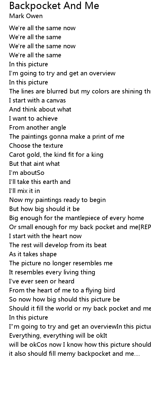 Or small enough for my back pocket and me[REPEAT CHORUS]