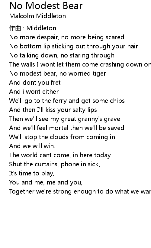 | Song | No Modest Bear |