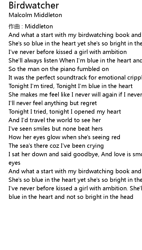 | I' ve never before kissed a girl with ambition. She' ll always listen When I' m blue in the heart and not so bright in the head |