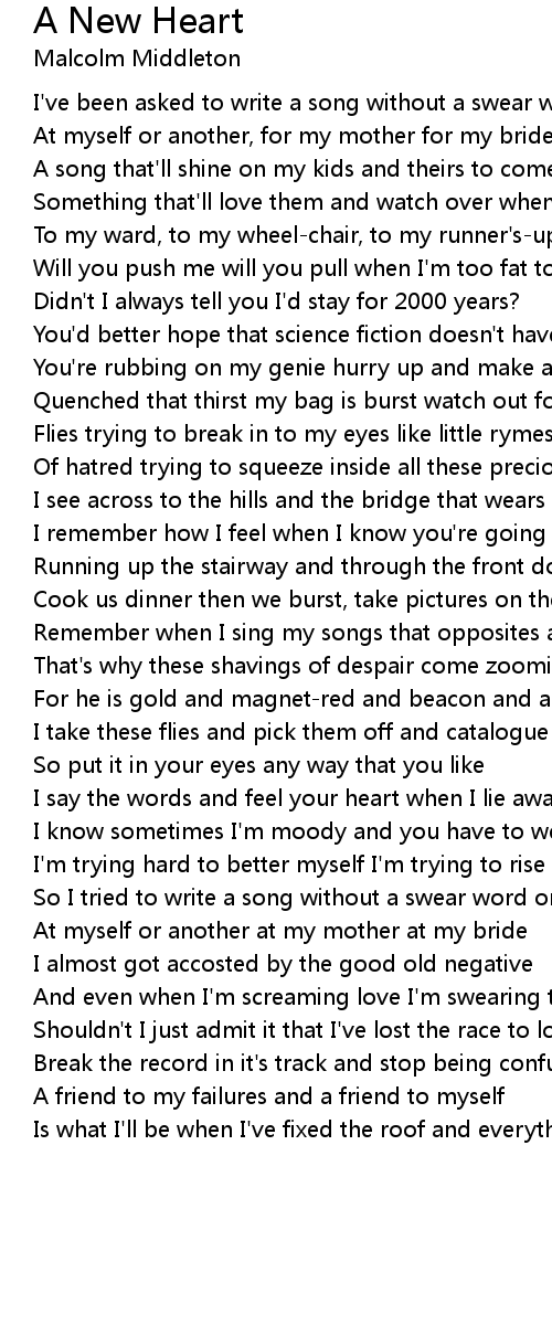 | Song | A New Heart |