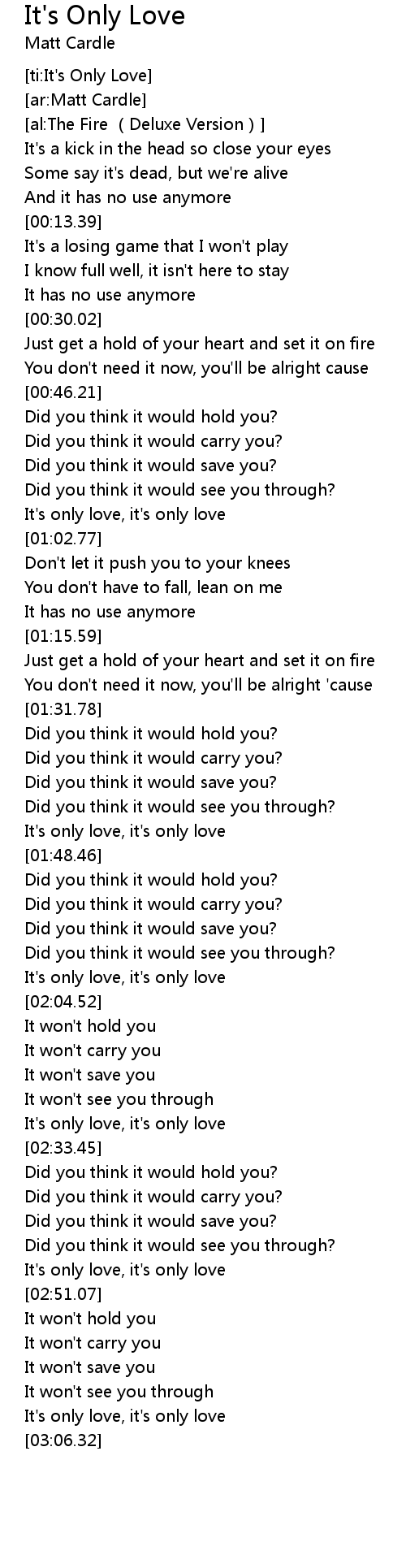 | [00:33.33] | Just get a hold of your heart and set it on fire |