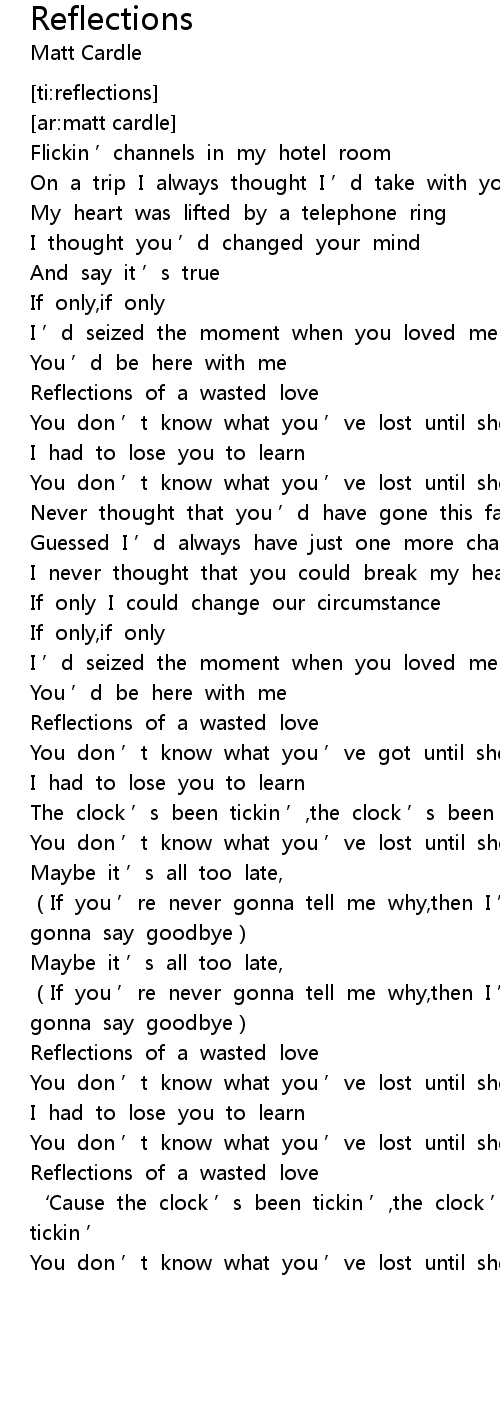 | [00:57.74] | You don ' t know what you ' ve lost until she ' s gone |