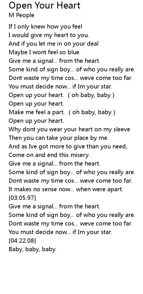 | Song | Open Your Heart |