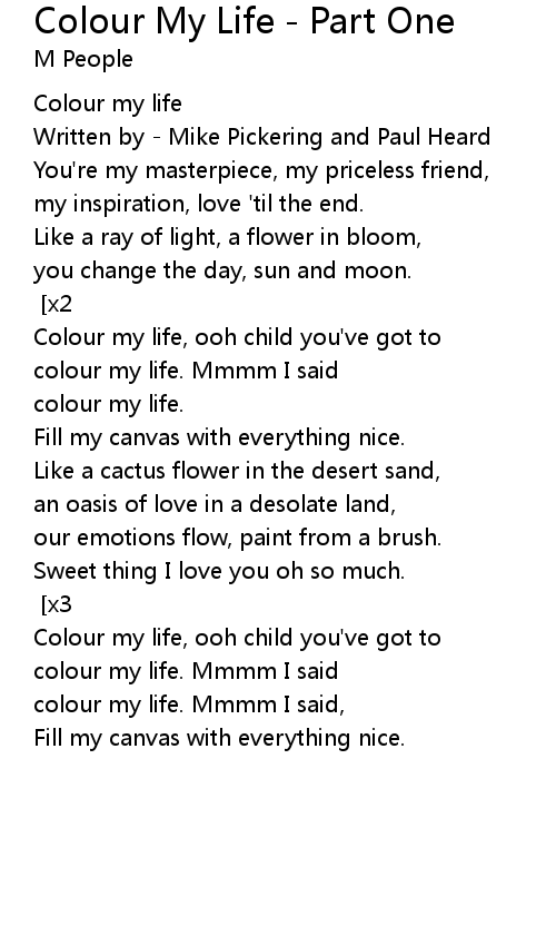 colour my life. Mmmm I said, |