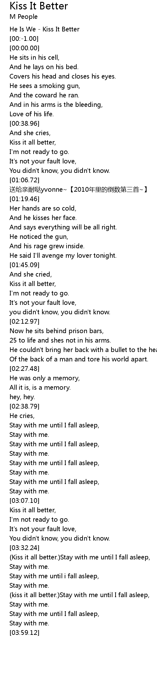 | [03:31.72] | Kiss it all better. Stay with me until I fall asleep, |