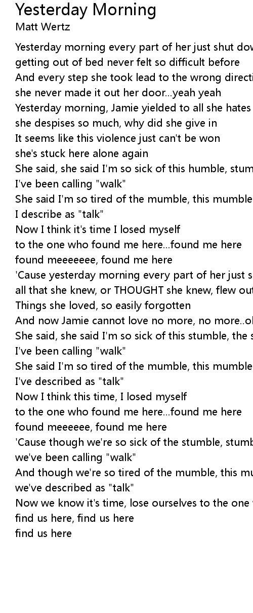 'Cause yesterday morning every part of her just shut down |