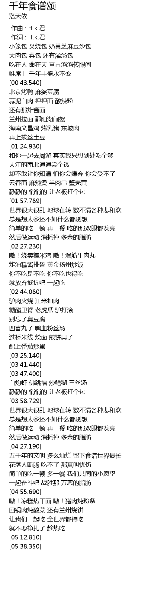 | [04:57.160] | ao! liang gao re gan mian ao! zhu rou dun fen tiao |