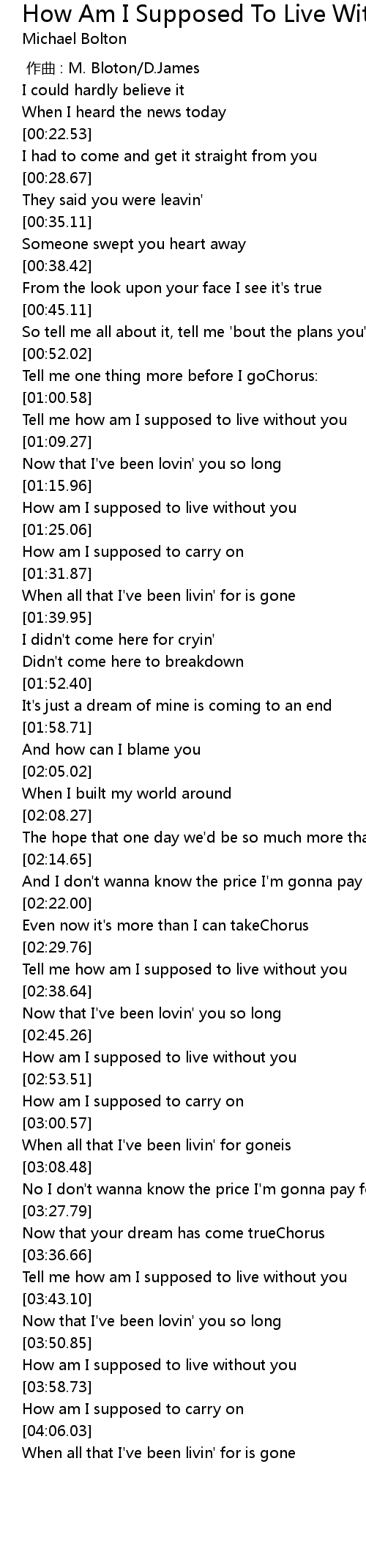 | [01:03.58] | Tell me how am I supposed to live without you |