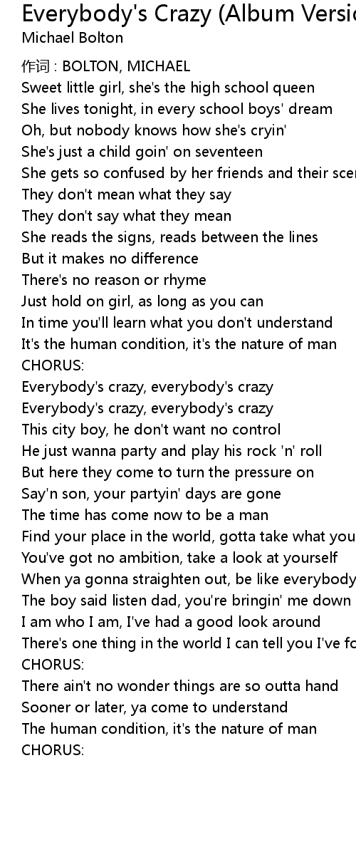 | Everybody' s crazy, everybody' s crazy | |