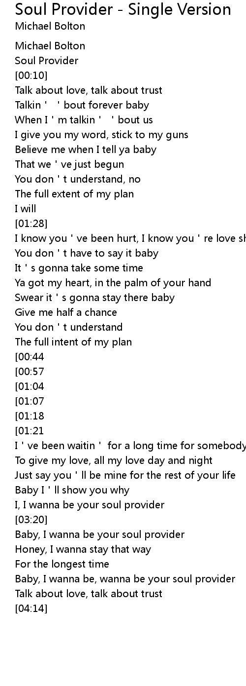 | [03:55] | Baby, I wanna be, wanna be your soul provider |