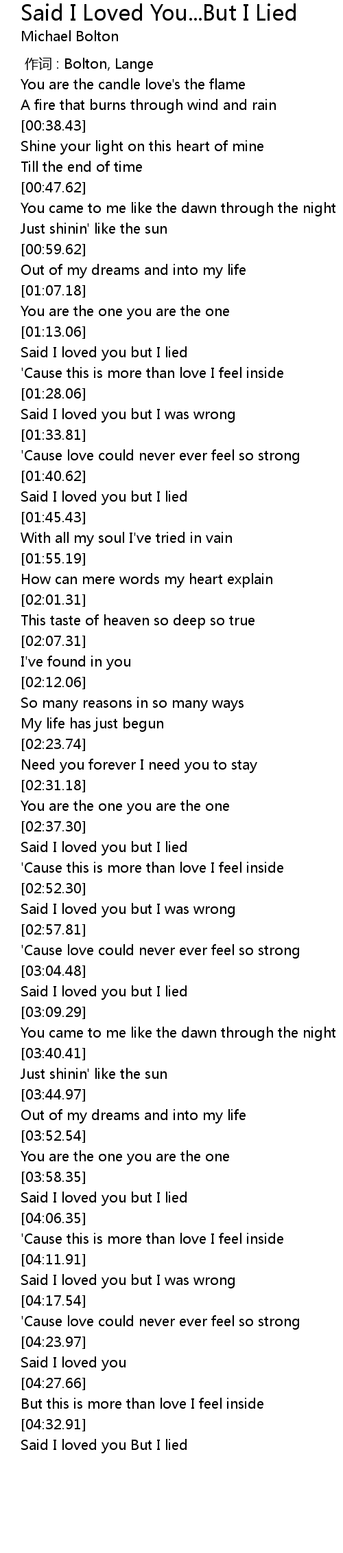 | [04:34.98] | Said I loved you But I lied |