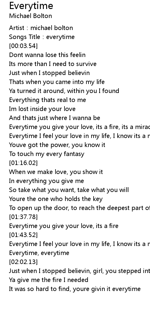 | [00:00.95] | Artist: michael bolton |