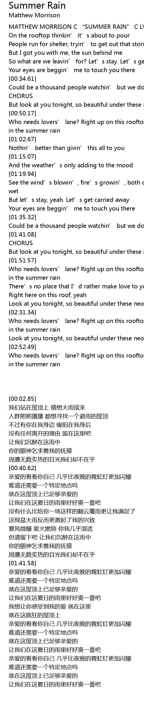 | [00:02.85] | MATTHEW MORRISON C “SUMMER RAIN” C LYRICS |
