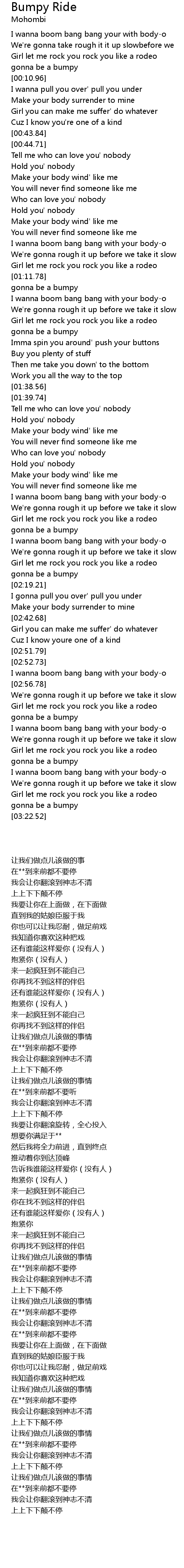 Bumpy Ride Lyrics