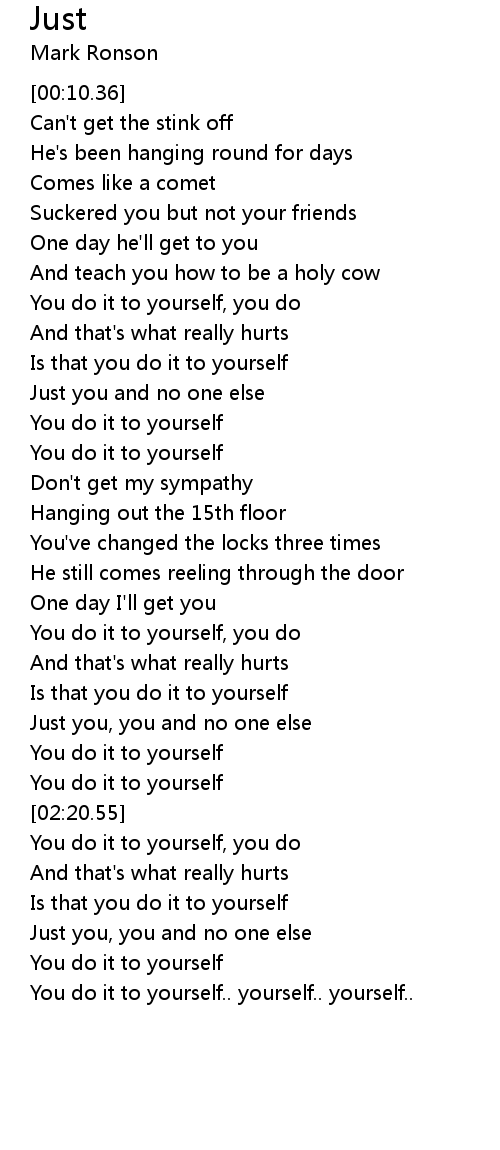 You do it to yourself, you do |