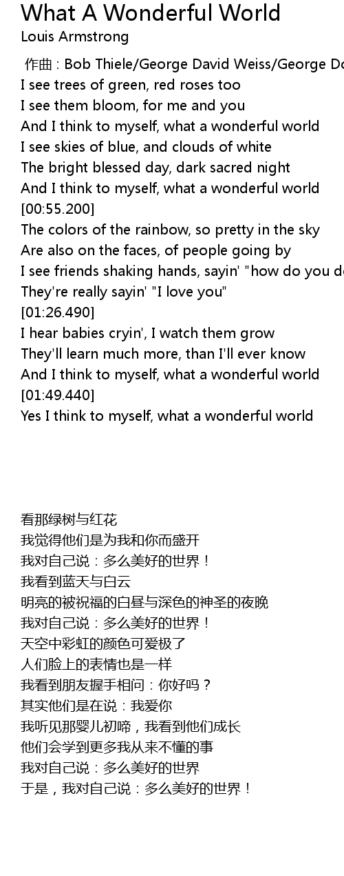 | [00:19.390] | And I think to myself, what a wonderful world |