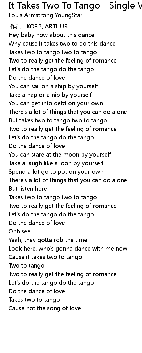 | [00:38.45] | But takes two to tango two to tango |