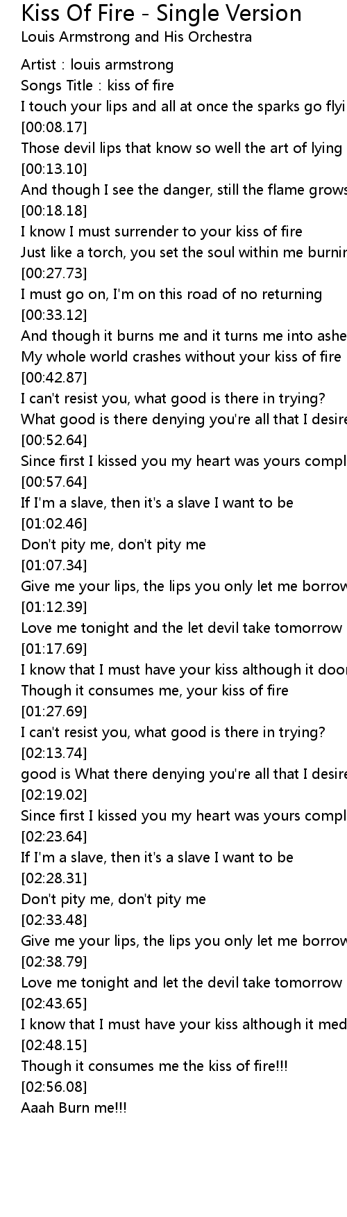 | [00:02.24] | Songs Title: kiss of fire |
