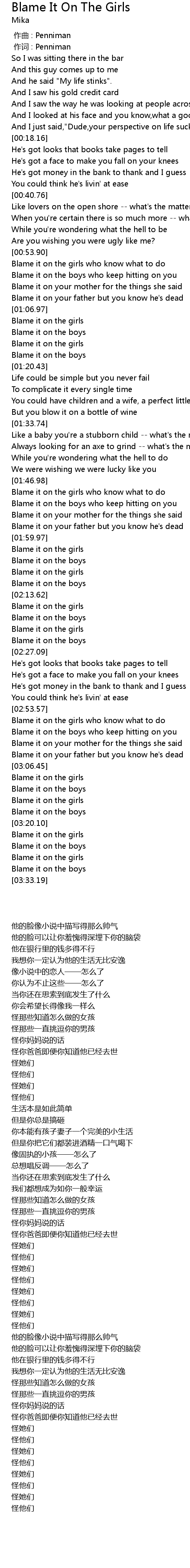 | [00:57.18] | Blame it on the boys who keep hitting on you |