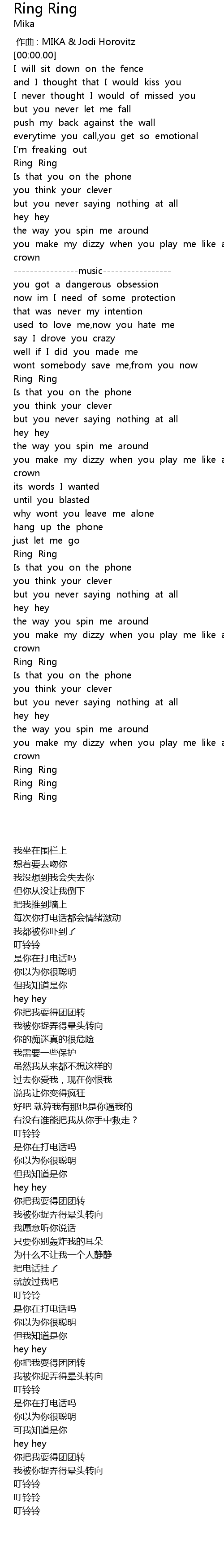 | [00:00.00] | 作曲 : MIKA & Jodi Horovitz |