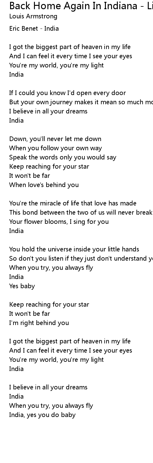 Back Home Again In Indiana - Live - Instrumental Lyrics