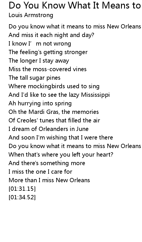 | [00:10.02] | Do you know what it means to miss New Orleans |