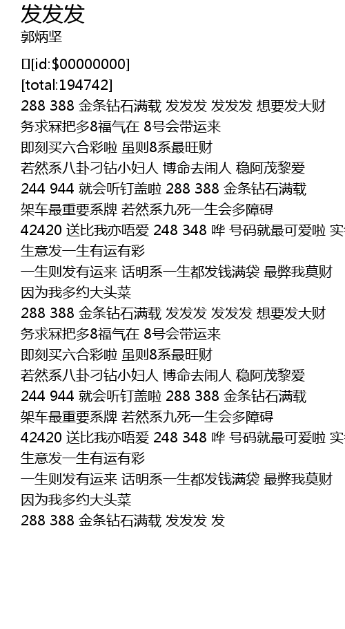 | [00:07.206] | 288 388 金条钻石满载 发发发 发发发 想要发大财 务求冧把多8福气在 8号会带运来 |