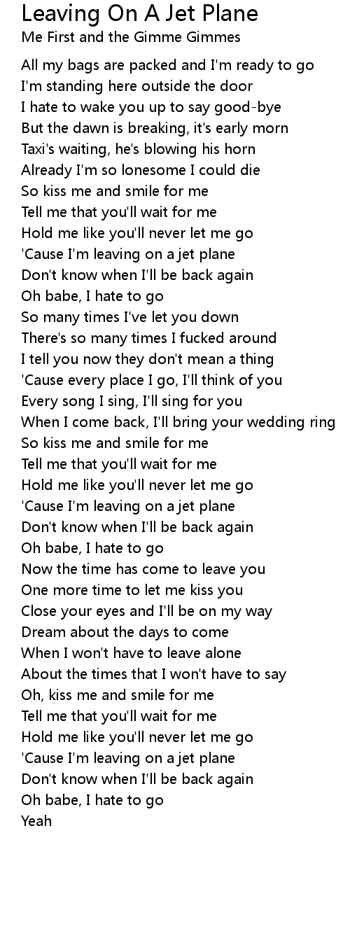 'Cause I'm leaving on a jet plane |
