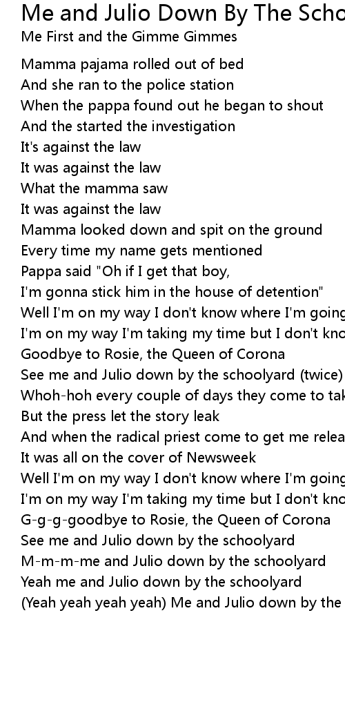 (Yeah yeah yeah yeah) Me and Julio down by the schoolyard (4 times) |