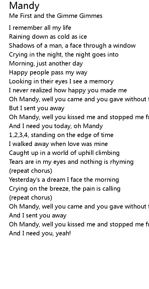 And I need you today, oh Mandy |