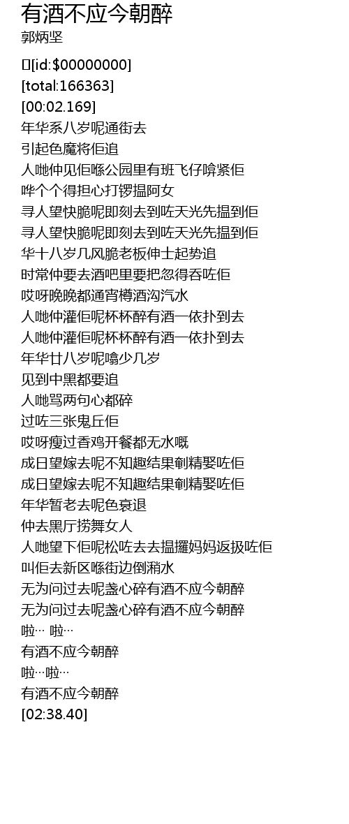 | [02:35.659] | 有酒不应今朝醉 |