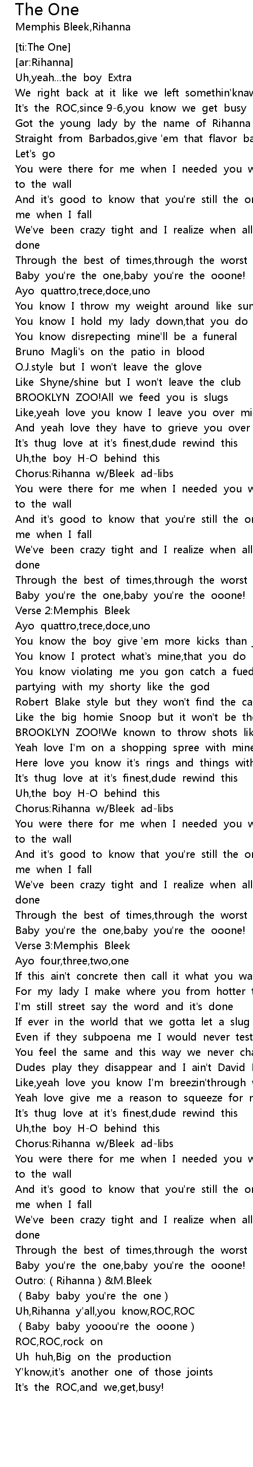 | [01:09.93]Chorus:Rihanna w/Bleek ad-libs] | |