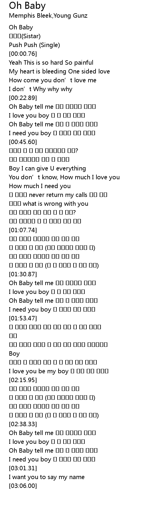 | [02:49.63] | Oh Baby tell me 그냥 내 곁에만 있어줘 |