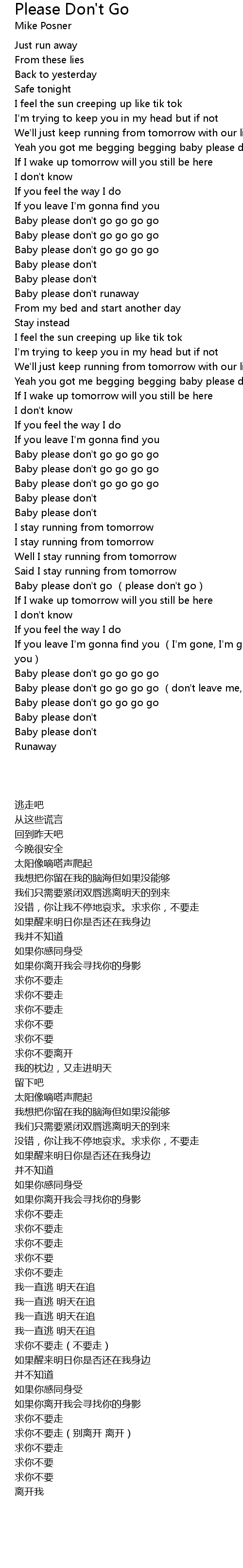 | [02:58.99] | Baby please don't go go go go (don't leave me, leave me) |