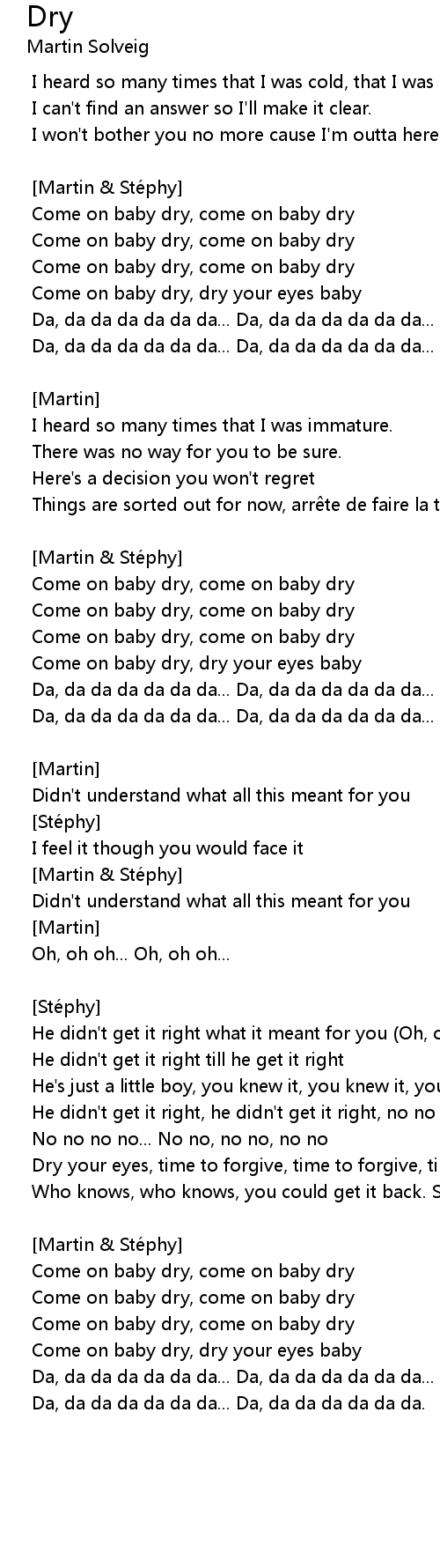 | Come on baby dry, come on baby dry | |