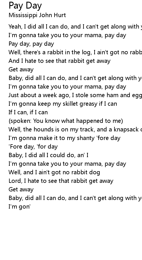 Well, there's a rabbit in the log, I ain't got no rabbit dog |
