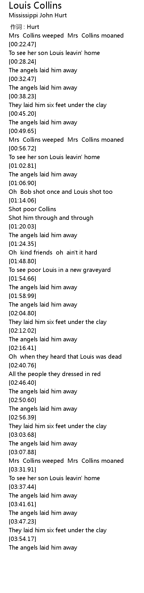 | [00:17.90] | Mrs Collins weeped Mrs Collins moaned |