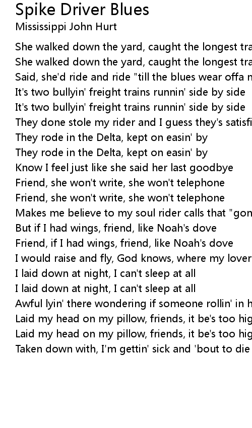 Said, she'd ride and ride "till the blues wear offa me" |