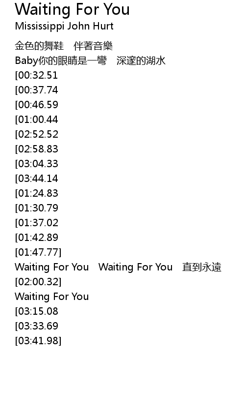 | [04:32.14][03:33.69] | Waiting For You Waiting For You Waiting For You |