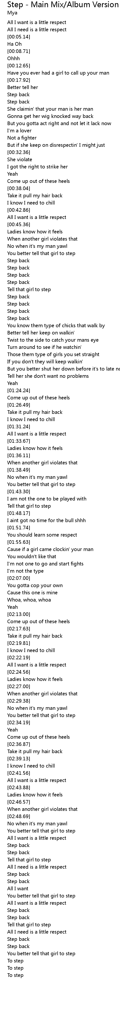 | [00:53.24] | You better tell that girl to step |