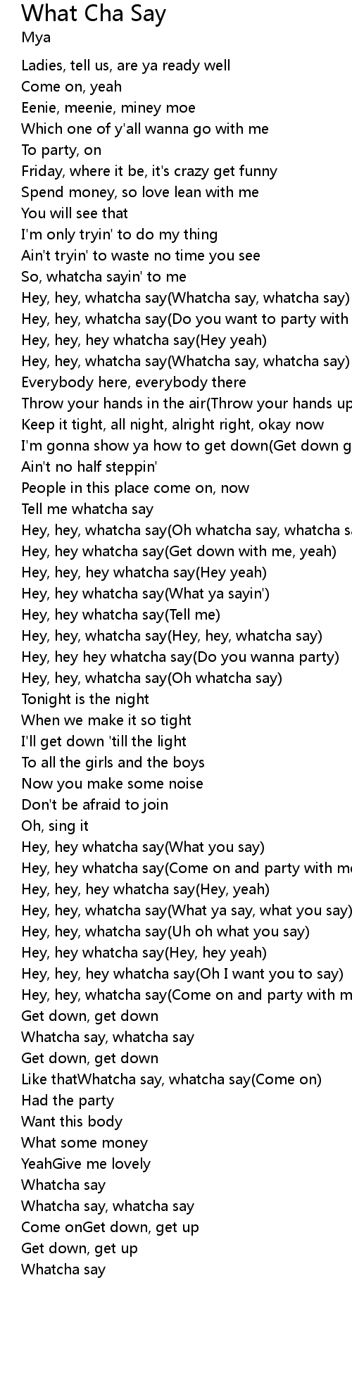 | Whatcha say, whatcha say | |