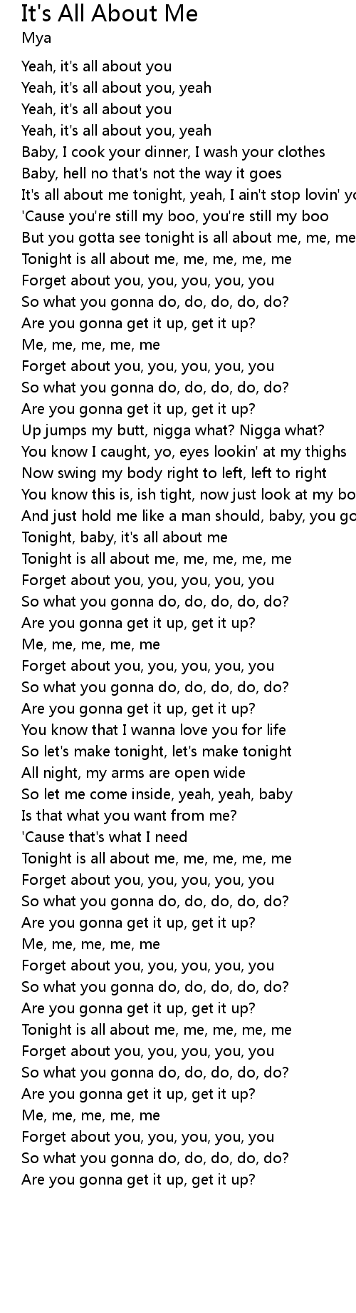 | But you gotta see tonight is all about me, me, me, me, me | |