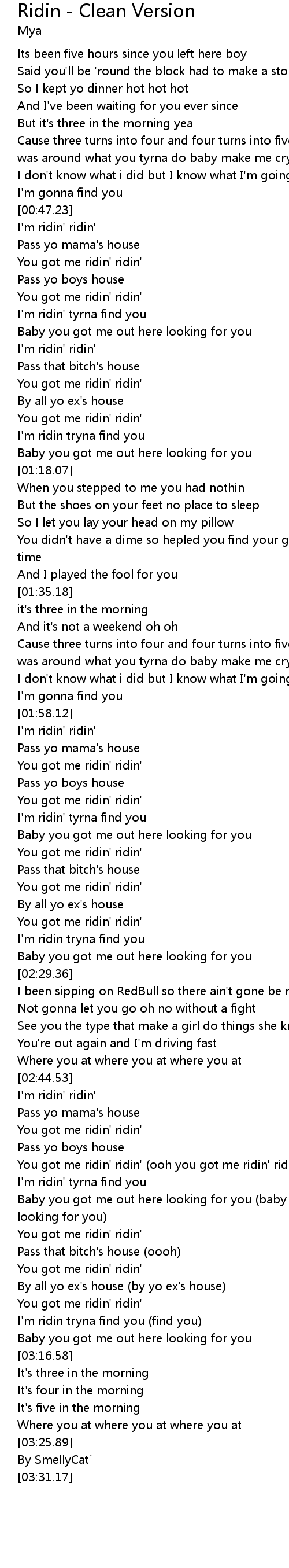| [03:04.64] | You got me ridin' ridin' |