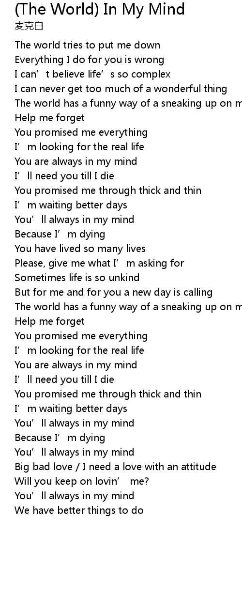 | You' ll always in my mind | |