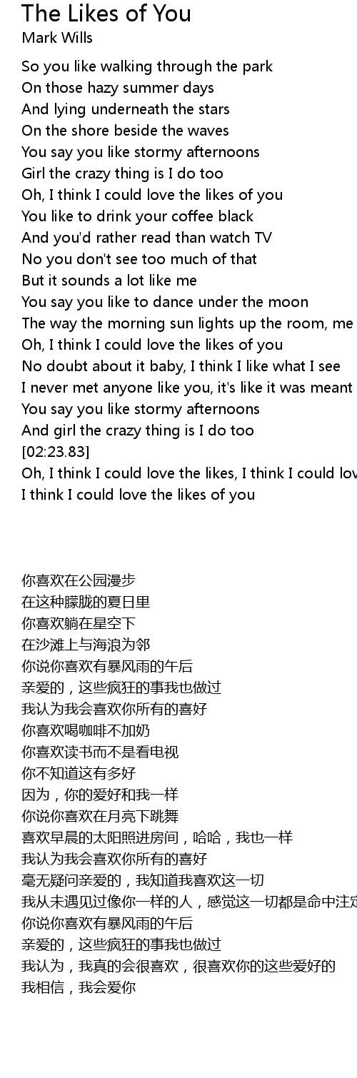 The Likes of You Lyrics