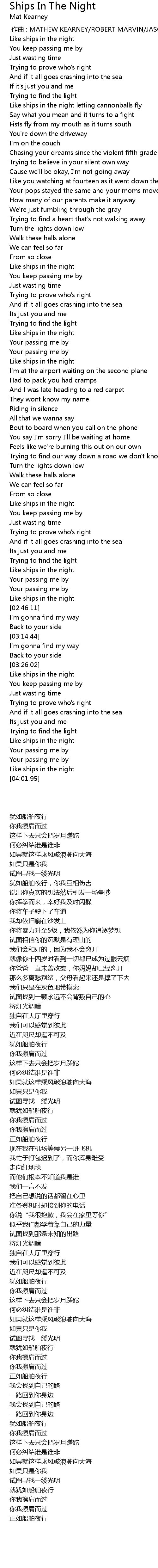 | [00:00.00] | 作曲 : MATHEW KEARNEY/ROBERT MARVIN/JASON LEHNING/JOSHUA CROS |