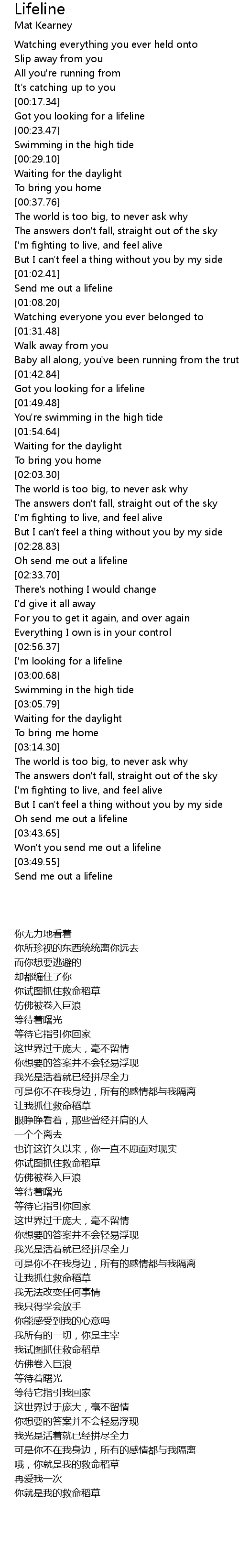 Oh send me out a lifeline |