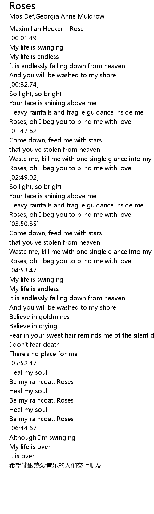 | [04:38.34] | Roses, oh I beg you to blind me with love |